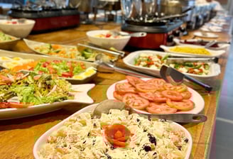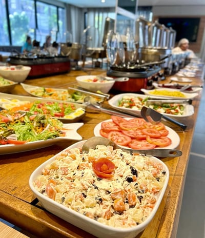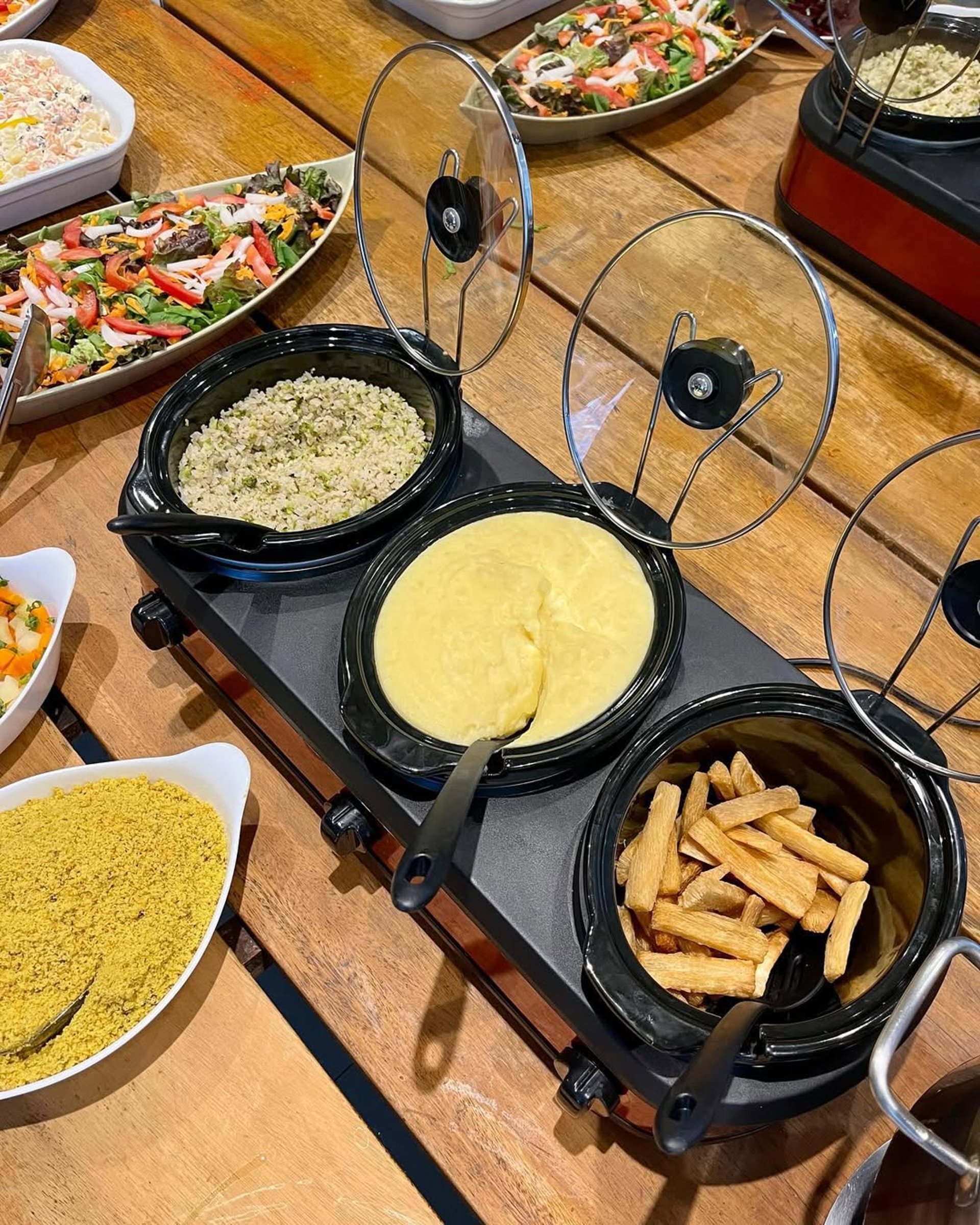 Nosso almoço self-service diariamente a partir das 11:30 até as 14:30h | Com mais de 5 proteínas e saladas variadas.
