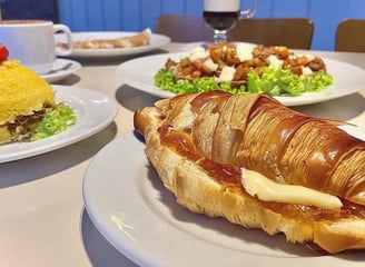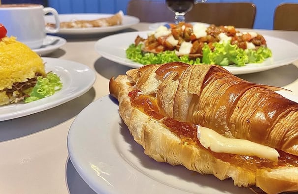 Tudo que você precisa em um só lugar, foco total nesse croissant de queijo com geleia - feita a base de- frutas vermelhas, damasco, pimenta e hortelã • Cafeteria, restaurante e mercearia até as 22H, aberto ao público.